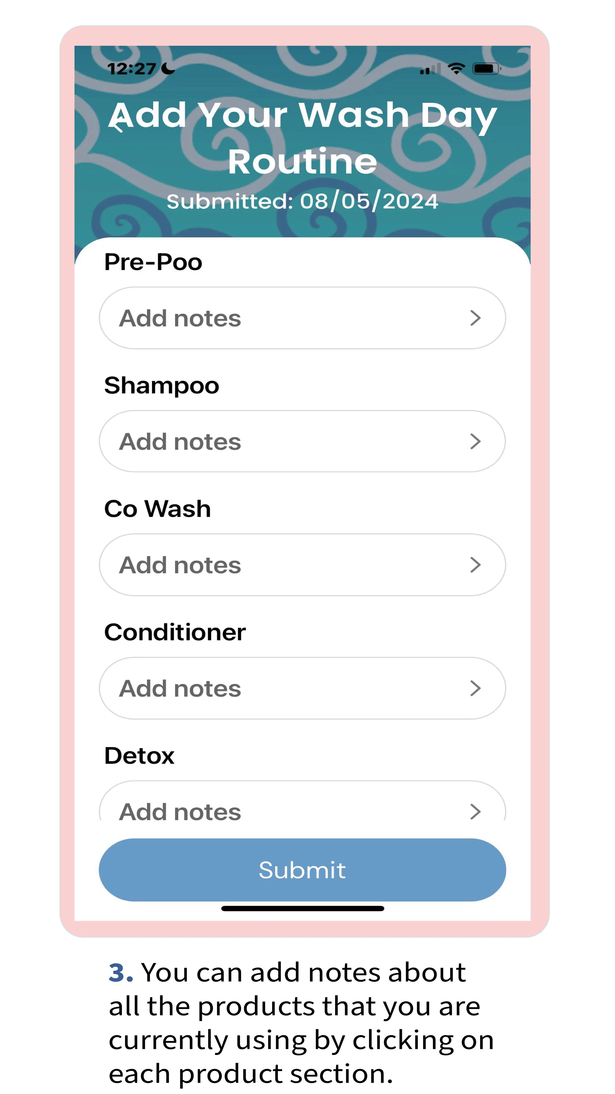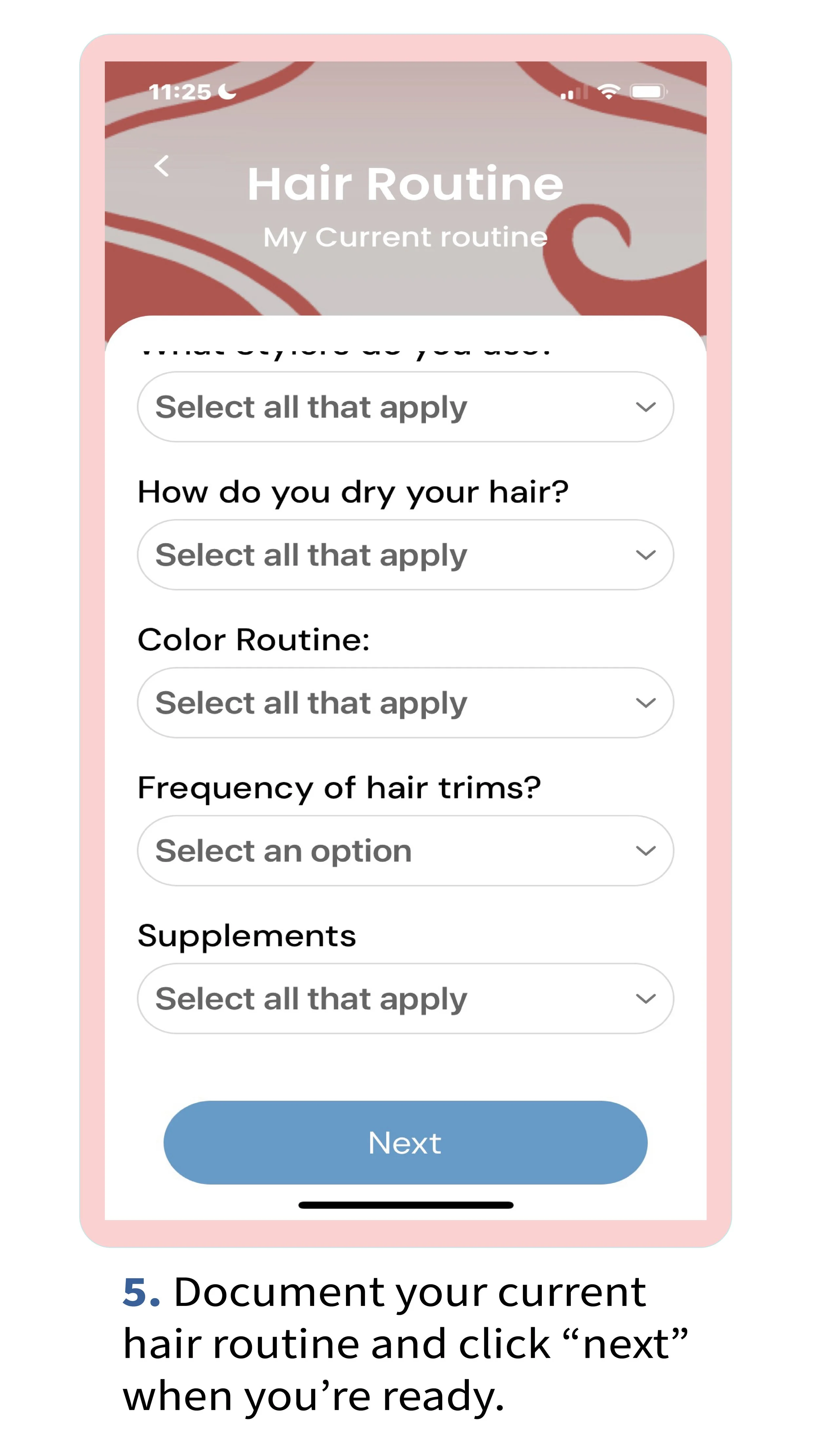 Setting up The Curl Compass is easy peasy! Just create a new account, enter your current hair routine and things that you’d like to track.